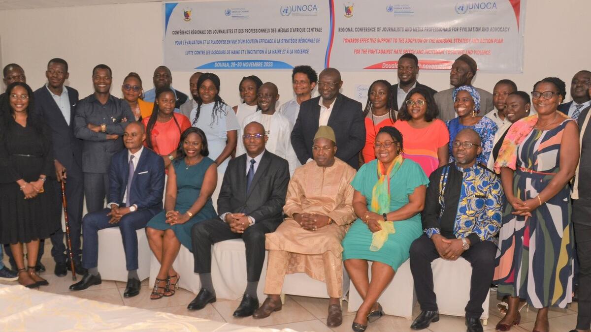 An award dedicated to media professionals from Central Africa who engage in the creation, production and publication of content countering hate speech and promoting a peaceful rhetoric will be launched in 2024. This is one of the main conclusions of a regional conference held from 28 to 30 November 2023, in Douala, the economic capital of Cameroon, with a view to evaluating and advocating for effective support for the Regional Strategy to counter hate speech and incitement to hatred and violence. Organized by the United Nations Regional Office for Central Africa (UNOCA) and the United Nations Center for Human Rights and Democracy in Central Africa with the support of the Cameroonian government, this meeting brought together about twenty journalists, bloggers and civil society representatives involved in this process for more than two years. The launch of an “award against hatred” is in fact the translation into reality of one of the main recommendations of a Regional Forum that Douala had already hosted in October 2021, which focused on raising awareness and building the capacity of the media and communication regulatory bodies on the prevention of conflicts linked to hate speech and the fight against this phenomenon in Central Africa.