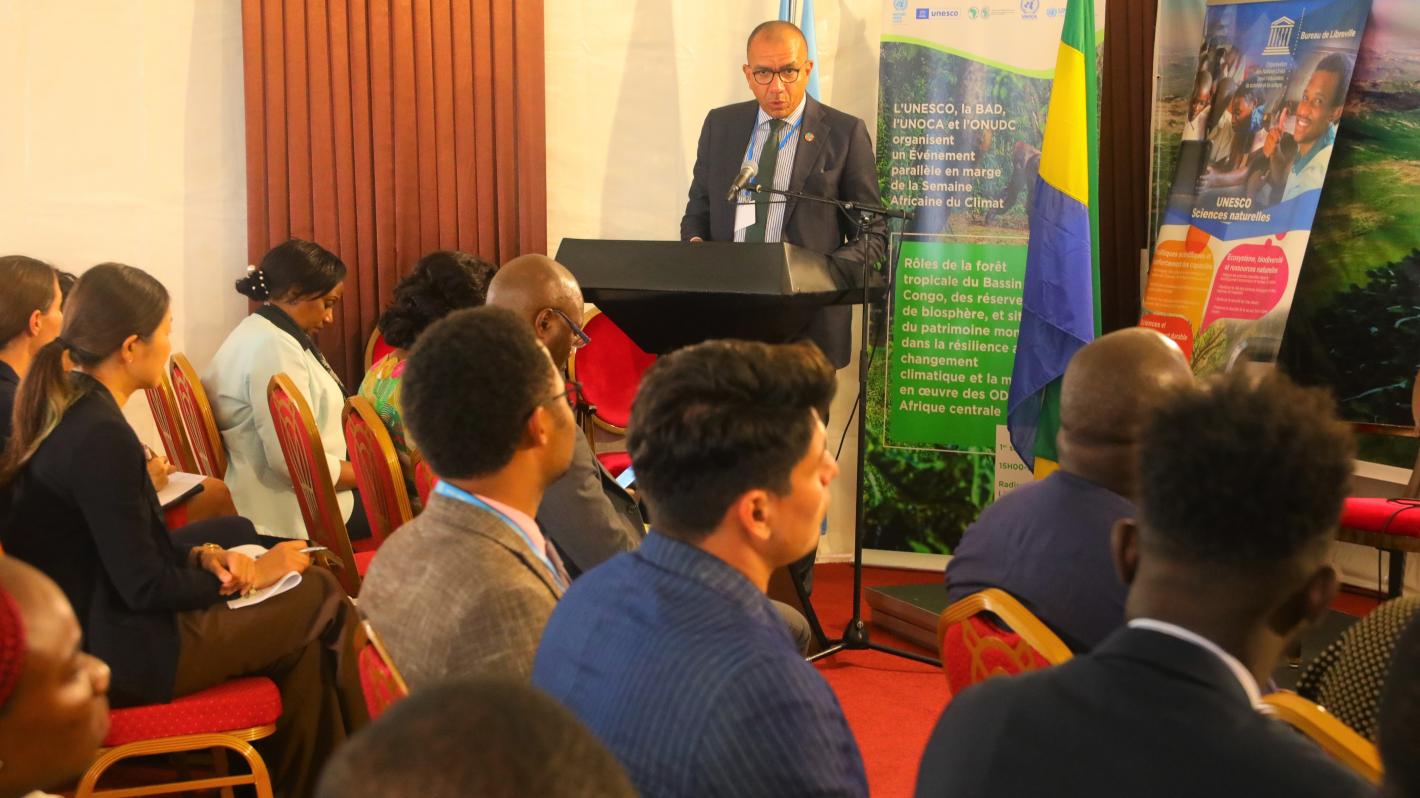 On 1 September, in Libreville (Gabon), the UN Regional Office for Central Africa (UNOCA) participated in the Africa Climate Week (ACW 2022) during a side event under with the theme “Roles of the Congo Basin rainforest, biosphere reserves, and World Heritage Sites in climate change resilience and the implementation of the Sustainable Development Goals (SDGs) in Central Africa.” Discussions also focused on the link between climate change and the environmental degradation of the Congo Basin rainforest, and peace and security in Central Africa. The Congo Basin rainforest has been identified as one of the key areas where climate change impact is aggravating human, national and regional security. The forest - a prime livelihood provider for 80 million people - is a global asset for climate action, conflict prevention and peacebuilding.