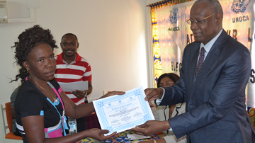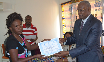 Photo : M. Abdoulaye Bathily remettant l’attestation à une participante. © Photo UNOCA/Norbert N. Ouendji