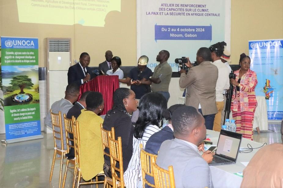 Un atelier de renforcement des capacités sur le climat, la paix et la sécurité en Afrique centrale a été ouvert mercredi 2 octobre 2024 à Ntoum, Chef-lieu du Département du Komo-Mondah, à une quarantaine de kilomètres de Libreville, capitale du Gabon. Organisé par le Bureau régional des Nations Unies pour l’Afrique centrale (UNOCA), en partenariat avec le Département des Affaires politiques et de la consolidation de la paix (DPPA), le Département des Opérations de paix (DPO) et l’Ecole des cadres du Système des Nations Unies (UNSSC), il regroupe plus de trente participants issus des missions et entités onusiennes de la sous-région ainsi que des représentants et experts de la Communauté économique des Etats de l’Afrique centrale (CEEAC), des organisations de la société civile, des partenaires techniques et financiers, etc. « Ensemble, mobilisons notre créativité et notre engagement pour faire face aux défis du changement climatique », a indiqué le Représentant spécial et Chef de l’UNOCA, Abdou Abarry, dans son allocution de circonstance. Il en a clarifié les enjeux, rappelant l’objectif numéro 13 des Objectifs de développement durable (ODD), qui invite les acteurs à différents niveaux à « prendre d'urgence des mesures pour lutter contre les changements climatiques et leurs répercussions ».