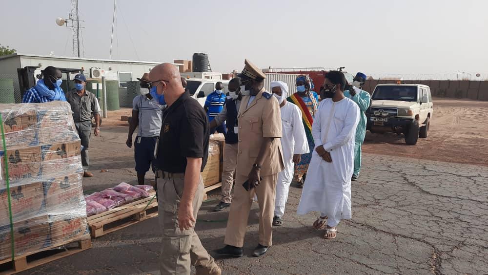 La cérémonie de remise s’est déroulée sur le tarmac de l’aéroport de Tombouctou, en présence du président de l’Autorité intérimaire de Tombouctou, des chefs de services du développement social, de la santé, du conseiller aux affaires juridiques du gouverneur de Tombouctou ainsi que du personnel de la MINUSMA.