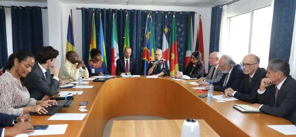 A l’invitation du Coordonnateur résident du Système des des Nations unies à Sao Tomé et Principe, Eric Overvest, une réunion des partenaires de ce pays a eu lieu le 5 juin 2024 dans la salle de conférence de l’UNOCA. Elle a permis de présenter un aperçu général de la situation de cet État insulaire considéré comme un modèle de démocratie en Afrique centrale. On a noté que bien que politiquement stable, il connait des difficultés économiques se traduisant par une croissance de -0,3% et un déficit budgétaire conséquent favorisant un retard dans le développement infrastructurel ainsi qu’une immigration légale et massive des jeunes vers l’Europe, et notamment le Portugal. Une situation qui n’est pourtant pas alarmante, si l’on s’en tient aux investissements actuels dans le pays et à l’aide financière des bailleurs de fonds internationaux, dont le FMI avec lequel le gouvernement santoméen est en négociation.